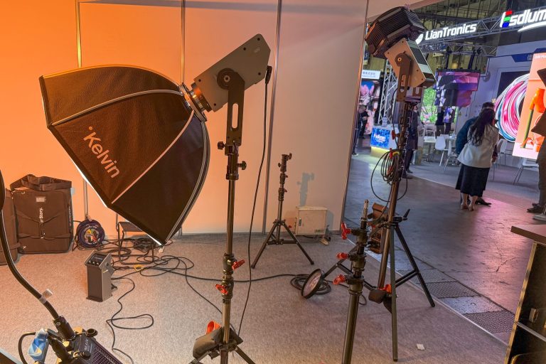撮影機材販売のHORIZONブース。HORIZONといえば、DZO FILMのレンズを中心に取り扱っているイメージがあったが、今年はGL OPTICSのリハウジングレンズやプロ向け三脚を中心に展開するOZEN、小型軽量の三脚・一脚を展開するCAVIX、インカムやガンマイク、スマホ用モニターを展開するSYNCOなどの製品を展示していた。