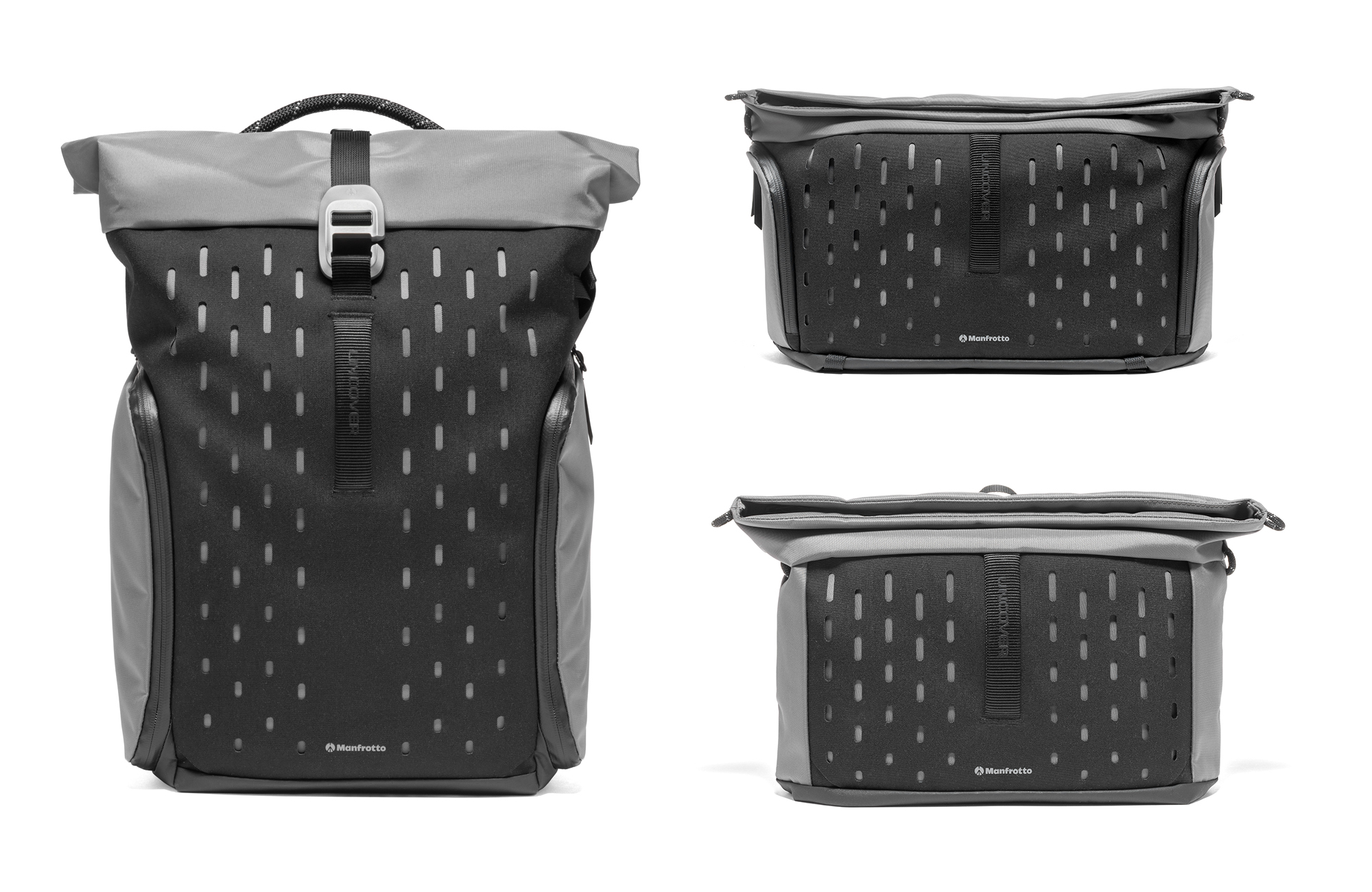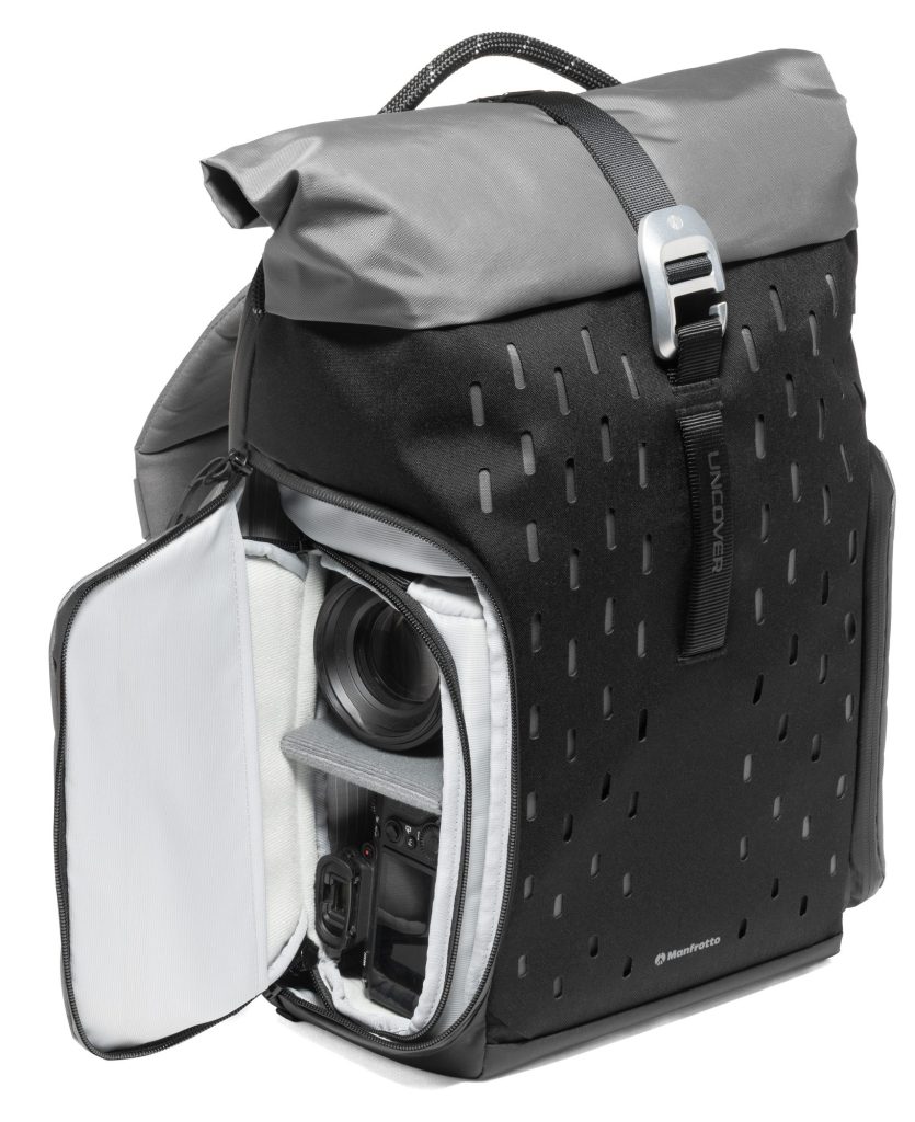 『UNCOVERは、スタイルと機能を両立する新カテゴリーのバッグコレクション。 従来のカメラバッグにありがちな、いかにも機材専用の印象を排し、ファッション・実用性・保護性能をひとつに融合した Manfrotto の新たなフラッグシップラインとなる。