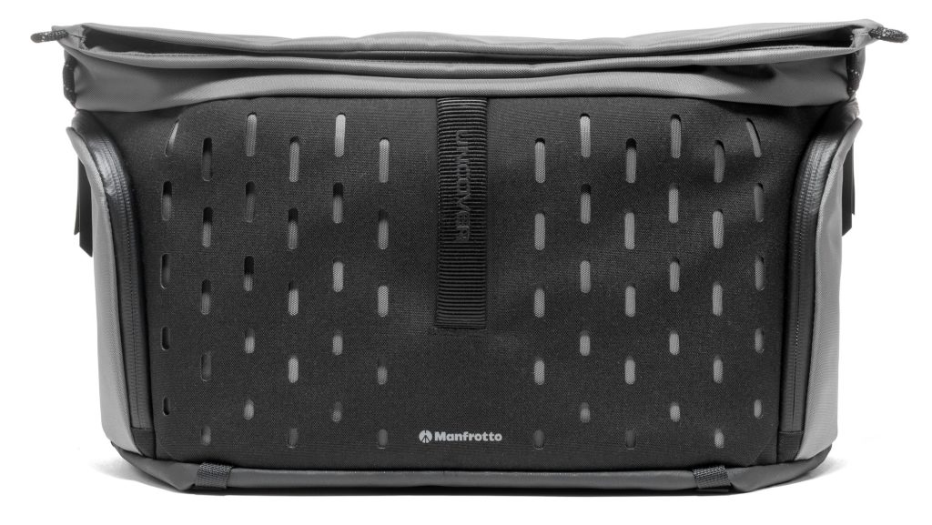 レーザーカットのスリットを多数施した二層構造のコーデュラが特徴。必要なアクセサリーを自在に追加できるカスタムスペースとして機能し、さらにジッパープラーや三脚ストラップをすっきり隠せることで、余計な要素のないシャープで洗練された外観をキープする。