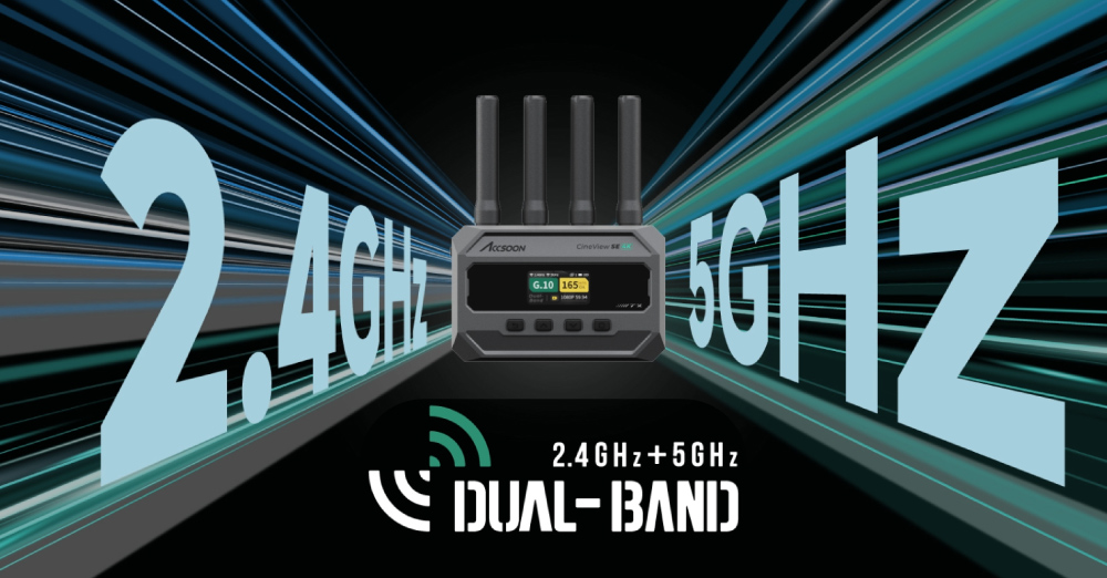 2.4GHzおよび5GHzの特許取得済みデュアルバンド伝送技術と、Accsoon独自のRTMS 4.0プロトコルを組み合わせている。2つの周波数帯域を同時に活用することで、コンサートや複数台のデバイスを使用するセットなど、複雑な信号環境でも干渉を抑え、安定した接続を維持する。