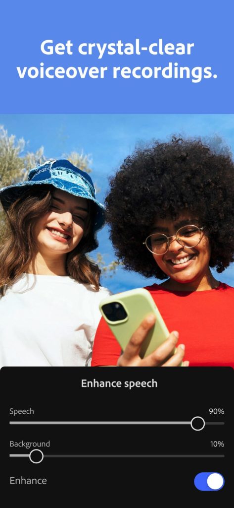 Adobe Premiere iPhone版は、無制限のトラック数による高精度な編集、クリアなナレーションとAIによる適切なタイミングの効果音作成などを備えたスタジオ品質のオーディオ機能、ユニークなコンテンツ生成と数百万点の無料のマルチメディア素材へのアクセスが可能。