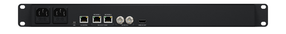 また、冗長性のある10GイーサネットSMPTE-2022-7を12G-SDIおよびHDMIに変換するコンバーターとしても機能し、ローカルビデオ用のモニターに接続可能。フロントパネルには、5ピンのトークバックインターフェースも付いている。