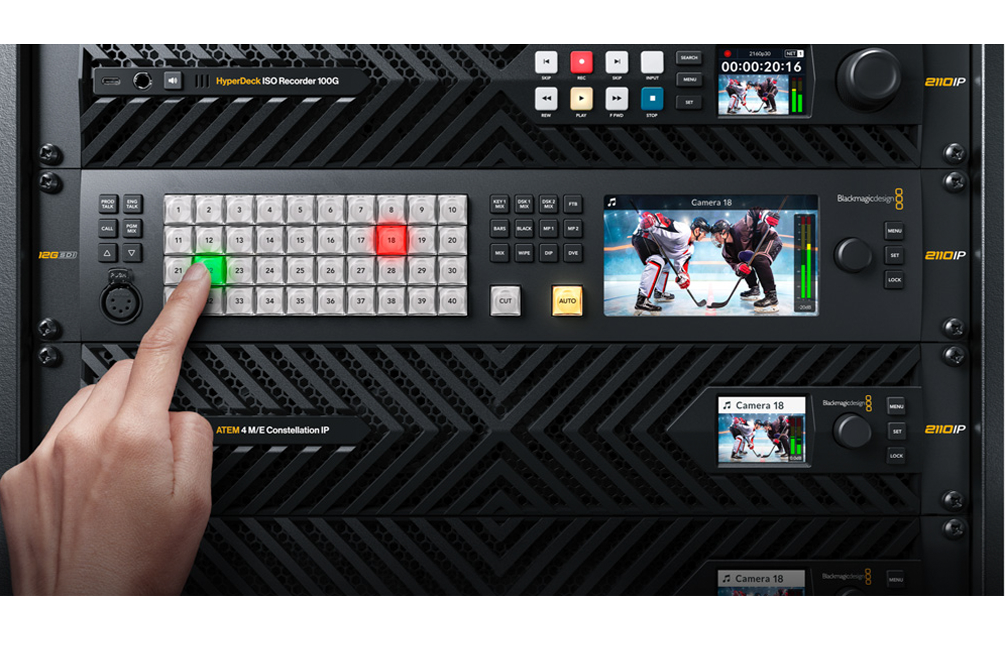同製品は、モニタリングコンバーターとコントロールパネルを組み合わせた新製品で、ATEM Constellation IPライブプロダクションスイッチャーと使用できる。ATEM Monitoring Rack Panelは、SMPTE-2110 IPをモニターに接続するためにHDMIおよび12G-SDIに変換する。また、フロントパネルの入力ボタンではスイッチャーの操作が実行でき、LCDとトークバック用の接続も搭載されている。