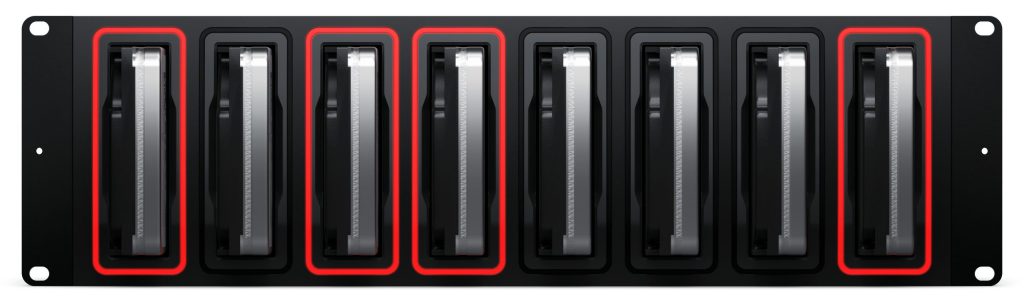 『Blackmagic Cloud Backup 8』はラックマウント型なので、スタジオ内で他のネットワーク機器の隣に設置したり、オンセットのDITカートでカメラバックアップ用に使用するのに最適。これにより、2つ目のバックアップで常にカメラファイルを安全に保存できる。8個の独立したハードディスクスロットを搭載しており、ネットワーク上ですべてのディスクを同時に使用可能。また、4ポートの超高性能な10Gイーサネットスイッチも内蔵。HDMI出力も搭載されているので、ストレージの状況をリアルタイムで表示するグラフィック・ビューをテレビやモニターで確認できる。