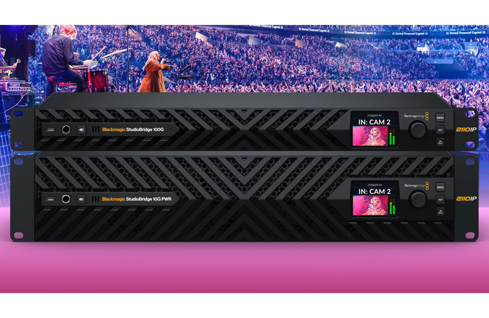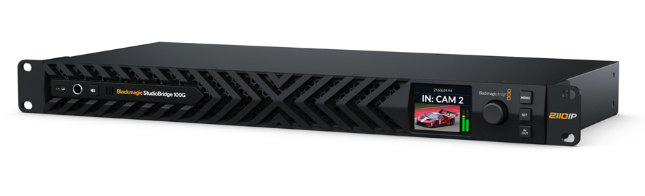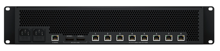 『Blackmagic StudioBridge 10G PWR』は、8系統の10GイーサネットSMPTE-2110接続を、最新の100G SMPTE-2022-7冗長システムにブリッジできる。8台までのカメラまたはコンバーターを、1台の100GイーサネットIPビデオシステムに統合できる。