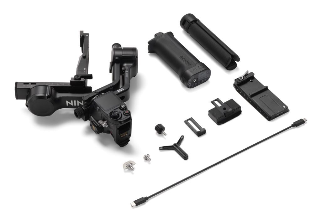 DJI RS 5(単体):ジンバル1個、クイックオープン三脚1個、レンズ止着サポート1個、ねじキット1個、上部クイックリリースプレート1個、下部クイックリリースプレート1個、BG33 バッテリーグリップ1個、マルチカメラ制御ケーブル1本が付属