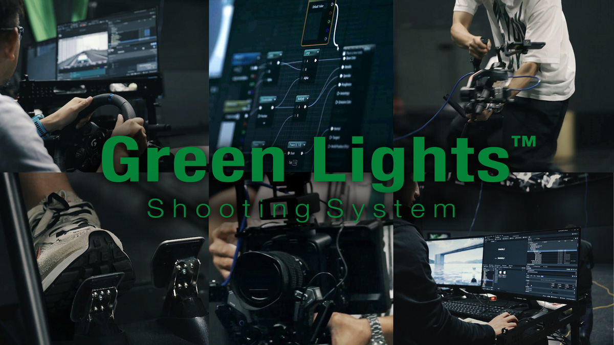 「Green Lights」は、バーチャル空間で自動車走行シーンを自由に撮影できる新しい映像制作サービス。天候や時間帯に左右されない撮影環境、ドローン撮影や地上1cmの撮影など現実では困難なカメラワークや、複数テイクによる多様な映像展開を実現。