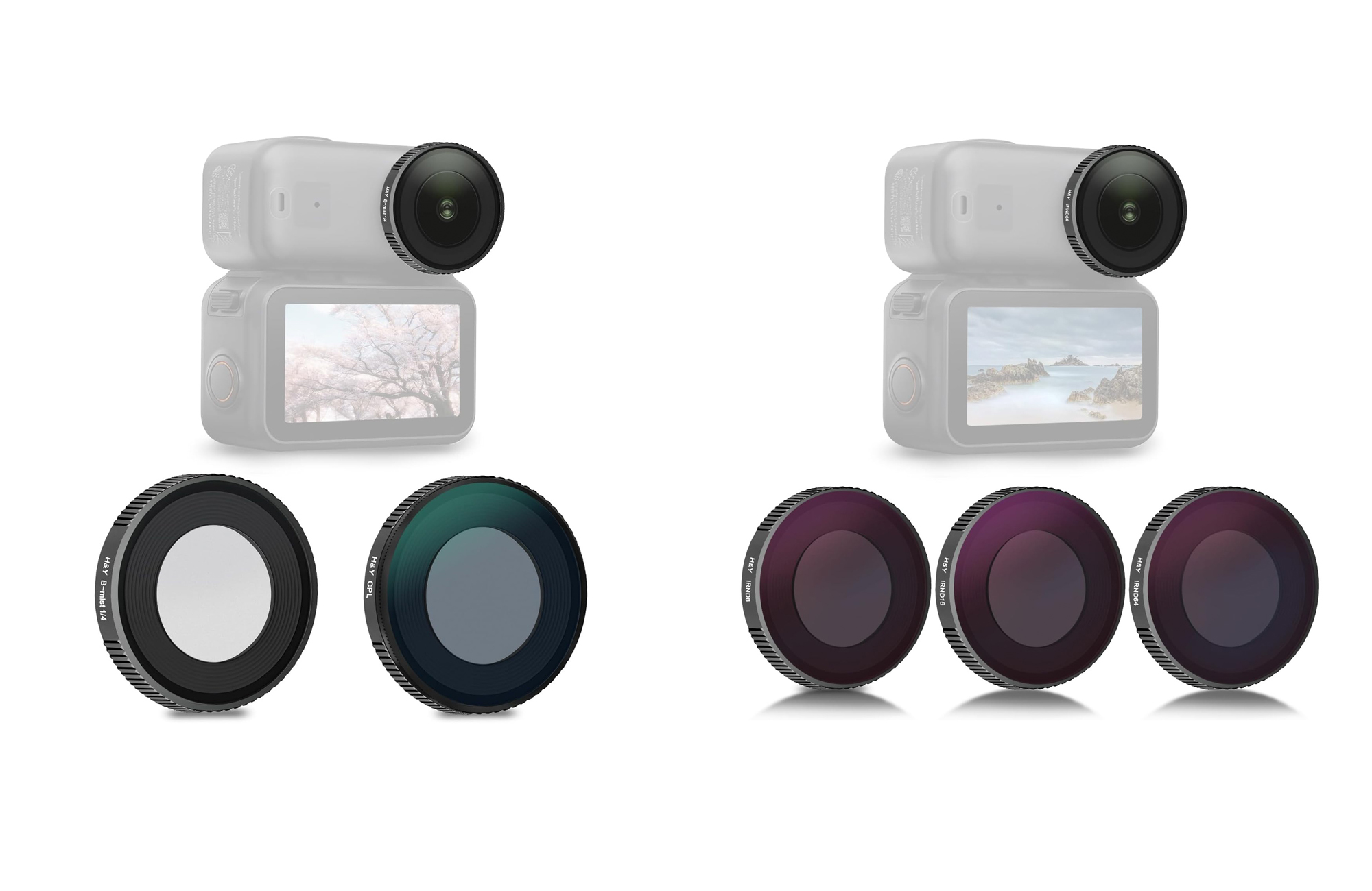 撮影用フィルターとして実績と定評ある H&Yの各種レンズフィルターと同じコーティングで製造されている。 使用頻度が高い3つの濃度(ND8/16/64)の3枚セット。