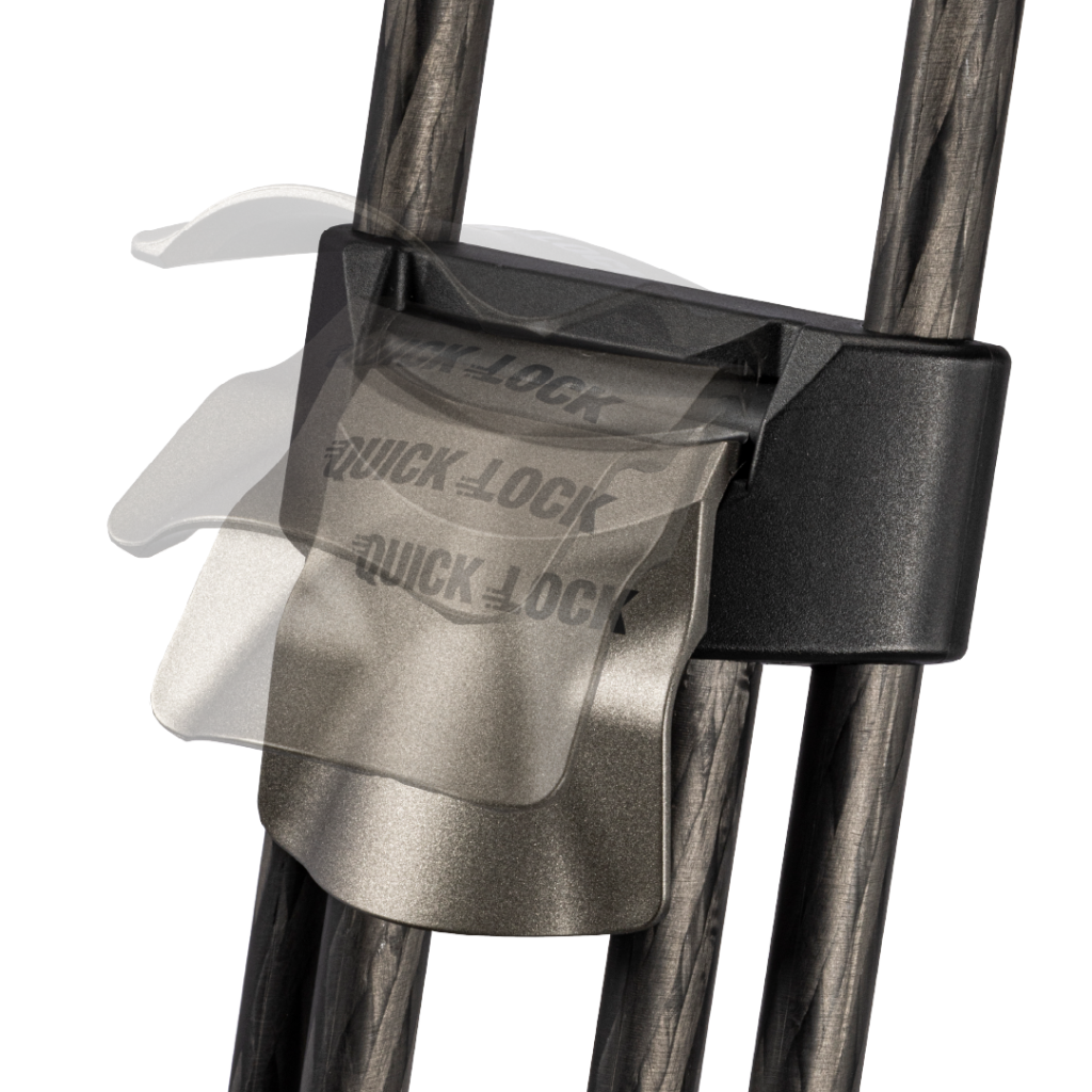 上段にあるロック機構ひとつで高さ調整ができる。フリップ式ロックの形状は人間工学の観点から設計されており、下からでも横からでも指を掛けやすくなっている。