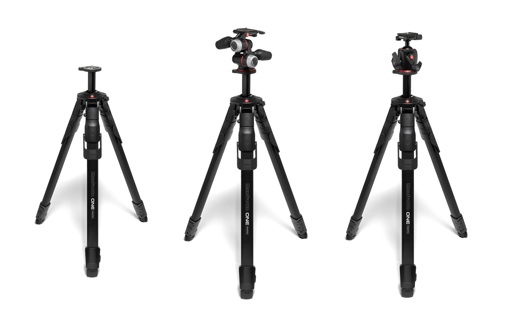 Manfrotto ONE Photo アルミニウム三脚シリーズは、3ウェイ雲台キットおよびボール雲台キットもラインナップ。