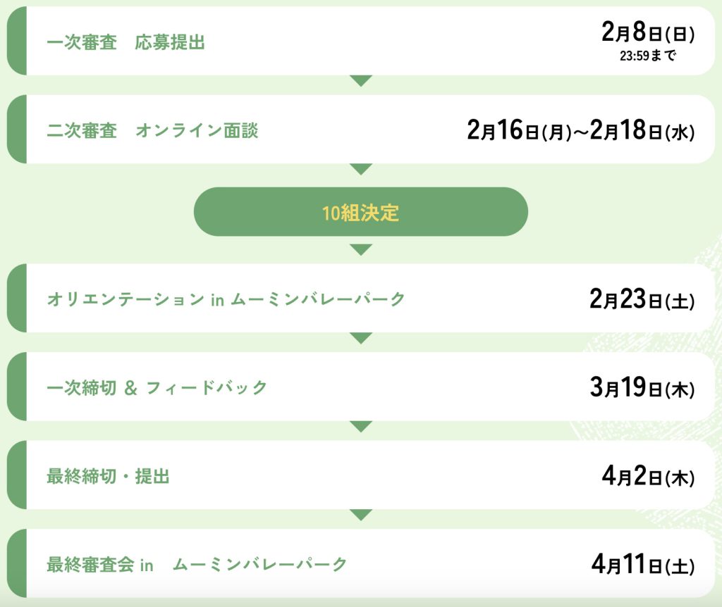 企画コンペ形式で選ばれた10組のクリエイターに対し、1組あたり制作資金50万円(総額500万円)が支給され、約1ヶ月間の制作期間を経て、2026年3月頃に完成予定のムーミンバレーパーク内指定施設にて上映される映像作品を創り上げるコンテストとなっている。