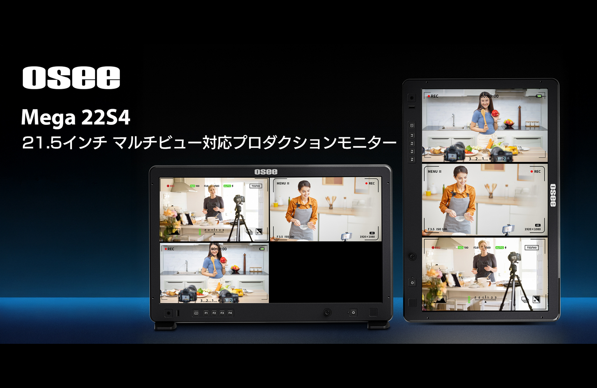 従来の「メガ 22S」の性能を踏襲しつつ入力系統を増やし、最大4つのソースを同時に表示することで、マルチカメラ撮影での映像チェックを効率化できる。