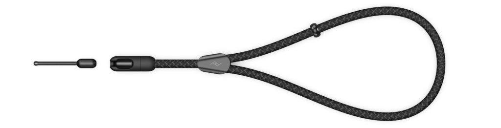 手が滑った瞬間にループが締まる安全設計を採用。アルミニウム製のストッパーで、あらかじめ手首に合わせた最小サイズを設定しておくことができる。