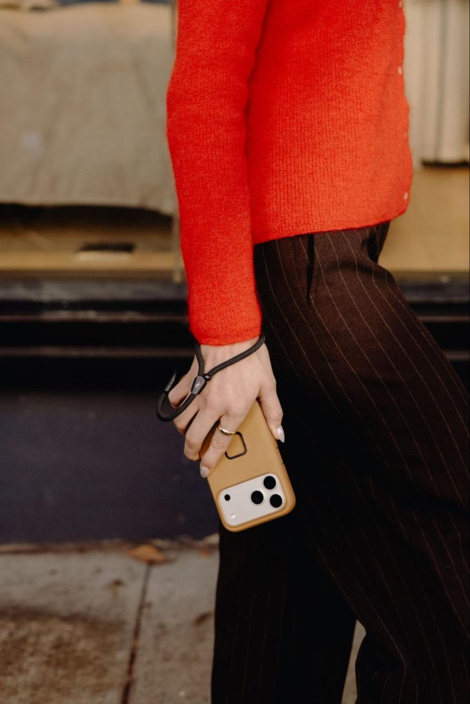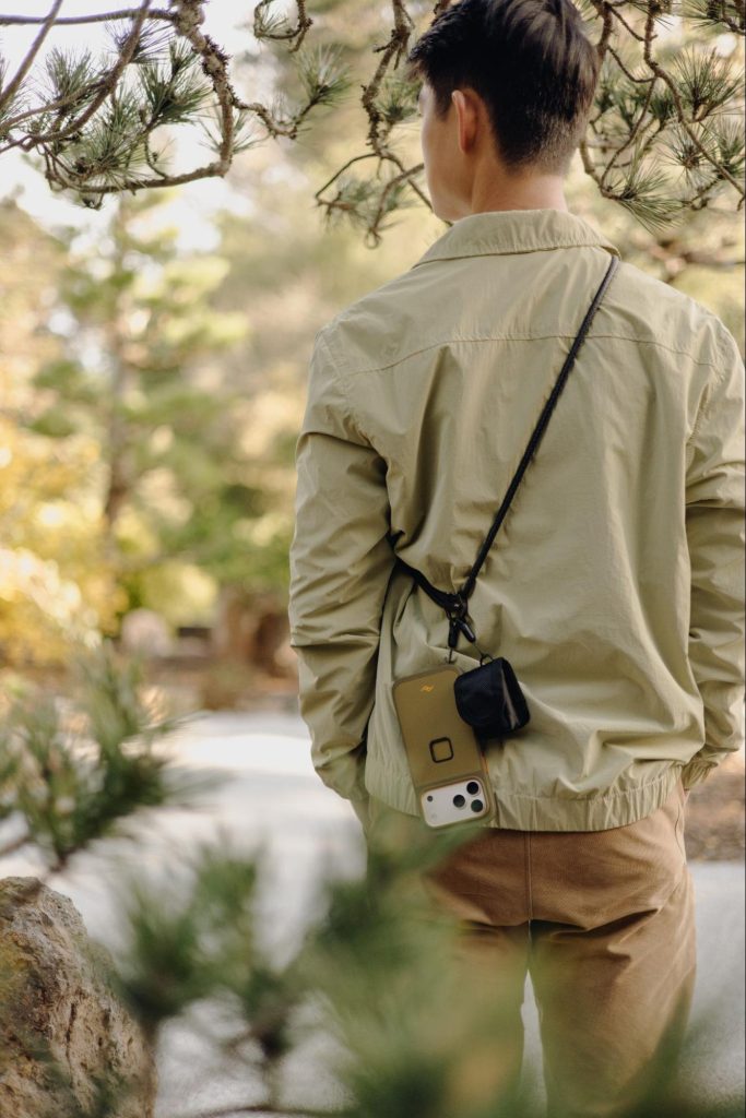 「モバイル クロスボディ ストラップ」は、すっきりとした印象を与える、シンプルな2点支持のショルダーストラップ。アクセサリーループを活用することで、1点支持への切り替えや、デバイスを外した際にストラップを体に沿わせてまとめることが可能。