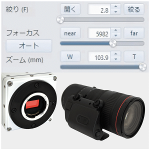 コントロールソフトウェア『Photron FASTCAM Viewer4(PFV4)』を使用し、PCからレンズの絞りとフォーカスの遠隔制御ができる。さらにRFマウントレンズにはアダプタを追加することで遠隔ズーム制御にも対応可能なレンズもある。カメラ設置位置への立ち入りが制限されている場合や、カメラと制御PCの位置が離れている場合に役立つ。