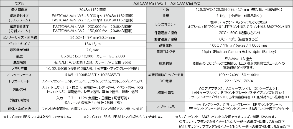 ※2:FASTCAM Mini UX100(5,000fps時、1280×1000画素)