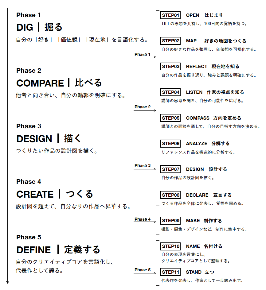 TILLは、実務経験を持つ若手映像クリエイターを対象に、約100日間かけて“自分のスタイル”を確立する実践型プログラム。同社のディレクター5人が100日間伴走しながらクリエイティブの思考を突き詰めていく。