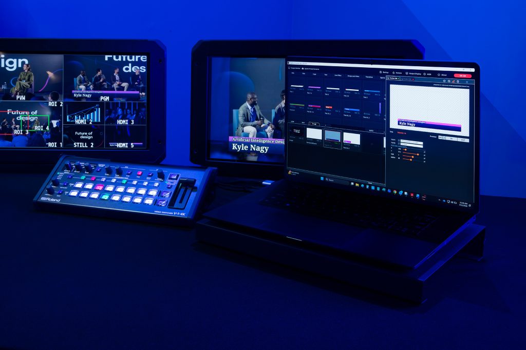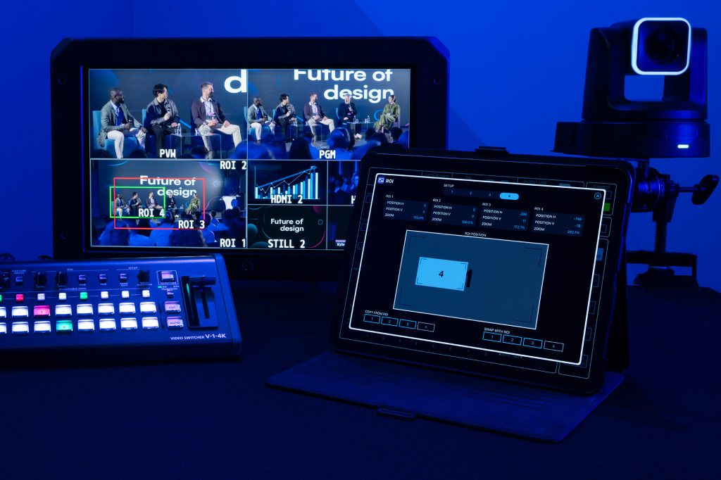 また、『V-1-4K』は、4Kカメラ1台の映像から最大4つのHD映像を切り出せるROI(Region of Interest)モードを搭載。全景や話者のアップなどの映像を作り分け、疑似的なマルチカメラ演出を行うことができる。さらに、ROI専用マルチビューで切り出し範囲をひと目で確認でき、少人数の現場でも効率的な映像演出を実現。