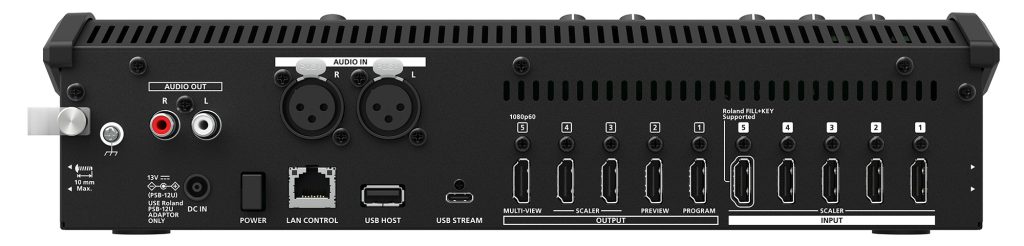『V-1-4K』はHDMI 2.0入力5系統、およびHDMI、USB、マルチビューを含む計6系統の出力を装備。入力系統のすべてにスケーラーを搭載し、4KとHDの映像が混在した状態でも使用可能。接続するすべての機器を4Kで揃える必要はありません。HDMI OUTPUT3・4にはダウンコンバート機能を備えており、4KをHDに変換して出力することもできます。