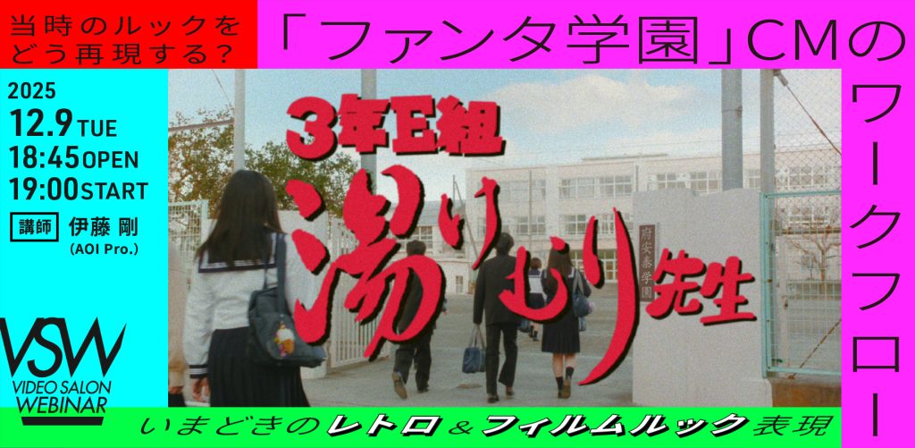 【12月9日(火)開催】VSW332 「ファンタ学園」CMのワークフロー 当日のルックをいまどうやって再現する?(講師:AOI Pro.伊藤 剛)