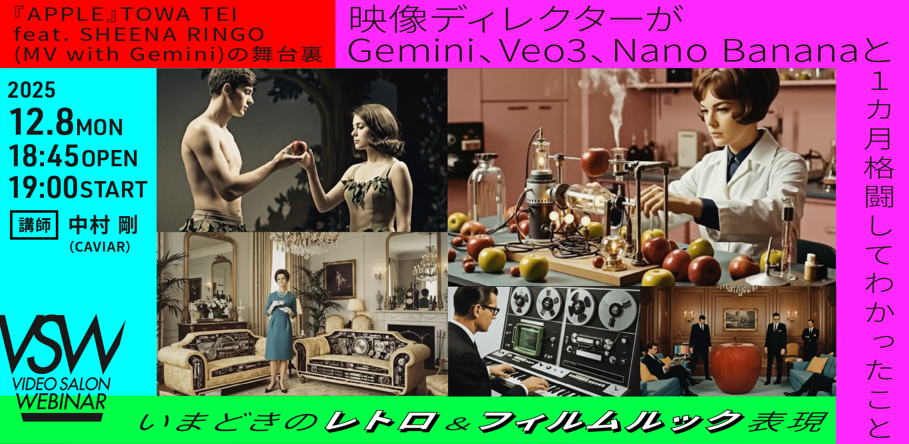 【12月8日(月)開催】VSW331「映像ディレクターがひとりでGemini、Veo3、Nano Bananaと1カ月格闘してわかったこと」講師:中村 剛(映像作家・CAVIAR代表)