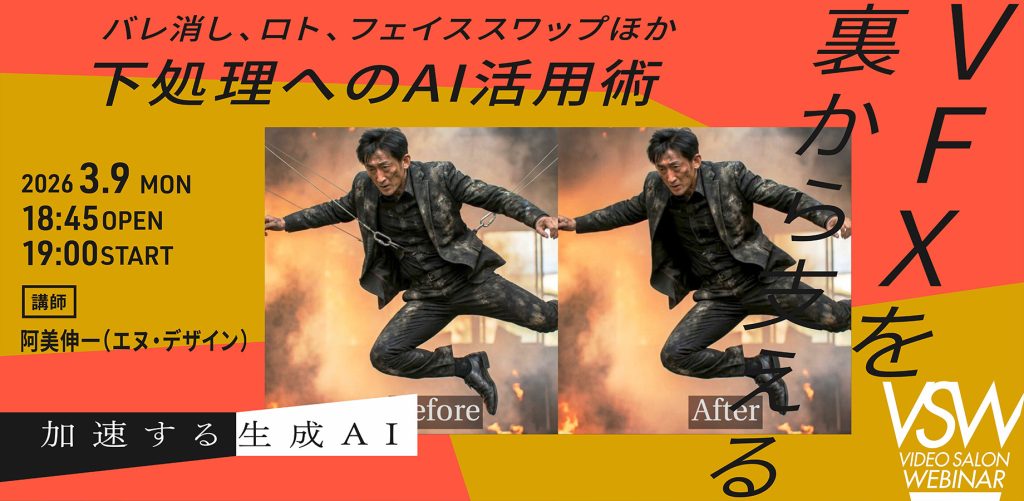 【3月9日(月)開催】VSW346「コンポジターが実用レベルで考える VFXワークを裏から支える、AI活用術」 講師:阿美伸一(エヌ・デザイン)