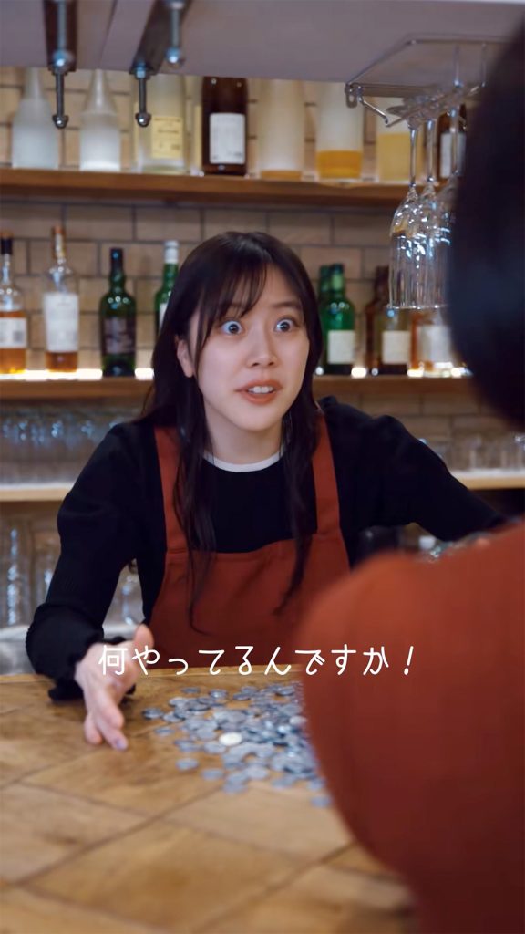 『お会計の変』というショート作品では、貯金箱の中から大量の1円玉が一気に出てくるカットがファーストカットです。本作はこのカットのおかげで高い視聴維持率を保つことができ、80〜90%の視聴者がスワイプしませんでした。このように、不穏な雰囲気で始まる事件性が大事で、「なぜ、この人は1円玉で払うの?」と困惑する女性の違和感が有効となるような始まりにしています。