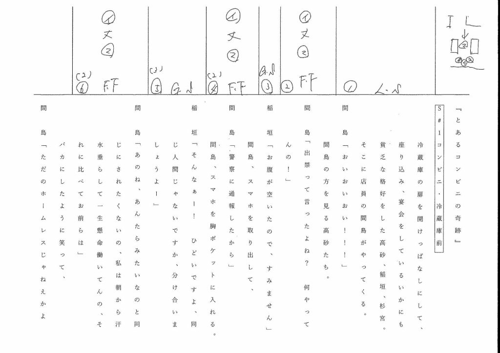 本作の台本比較。「セリフについては、長いセリフや説明っぽくなるセリフだと間延びしてしまい、ハマりが良くなかったり、視聴者が離脱してしまうポイントになると考えているので、基本的には複数人の短いセリフのやり取りで展開していくような台本を意識しています」とカツオさん。