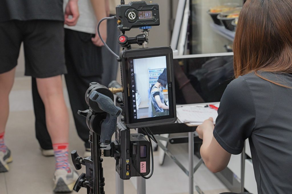 縦型ならではの演出で言うと、頭上のナメなんかは僕らが最初にやり始めたんじゃないかなと思います。ナメを撮るときって、被写体となる人物の手前に別の人物を配置して奥行きを出した撮影をするんですが、画面が縦の場合は下半分に人の頭を置き、上半分に撮りたい人物の顔を置くという構図になります。これは横型ではあまり見ない構図かと思いますね。