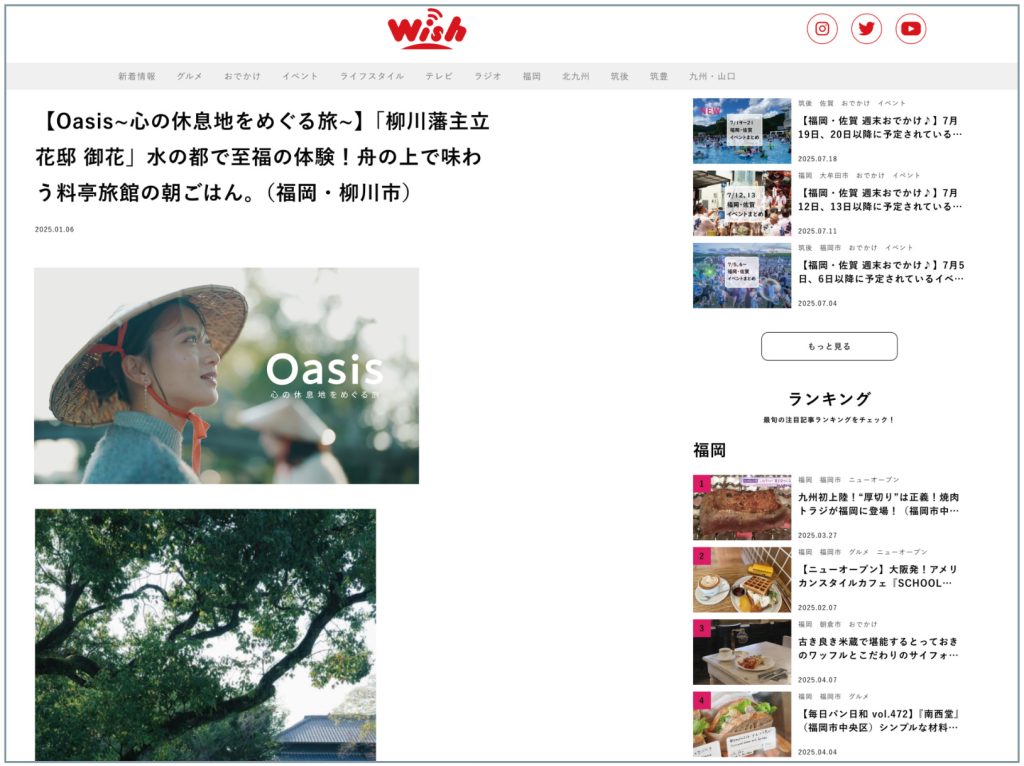 福岡・九州ジモタイムズ『Wish』のWEBサイト。ここに連動した写真とテキストの記事もアップする。