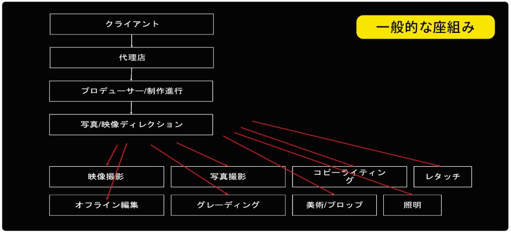 そもそもbird and insectは「イメージづくりの力を駆使して世界観を描き伝えるcreative studio」と名乗っています。簡潔に説明すると、クライアントの想いを、その企業のブランドイメージを理解しながら、我々の質問力・クラフト力・提案力を最大限に活かし、正しく・美しく伝わるビジュアルを作ることを目指している会社、ということですね。特徴は企画から納品まで一貫して行うのに最適な組織構造を採っていることだと思います。ディレクター、プロデューサー、フォトグラファーなど、完パケでイメージづくりができる社員スタッフが揃っていて、それぞれが高いクラフト力を持っている、と。