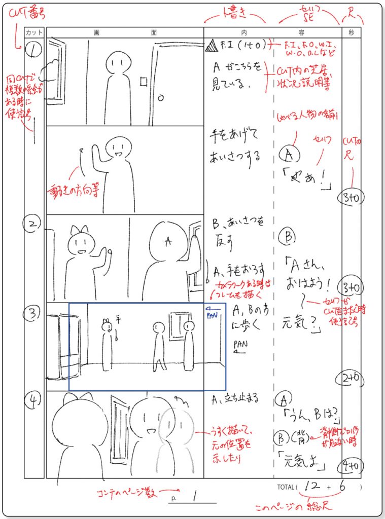 全てのカットにおける動き、構図、カメラアングル、尺などを説明できるようになるのが理想的