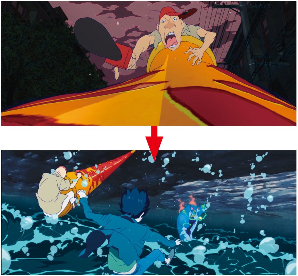 チャオが魚の姿に戻ってしまうシーンには、実はもうひとつ想いがあります。過去にデビルマンやウルトラマンなど、いろいろな変身モノの作品を見てきましたが、その際に気づいたことなんですが、AからBに変身する過程ってとても中途半端でグロテスクなものが多いんです。その部分を作中でどうしても見せたいと思いました。