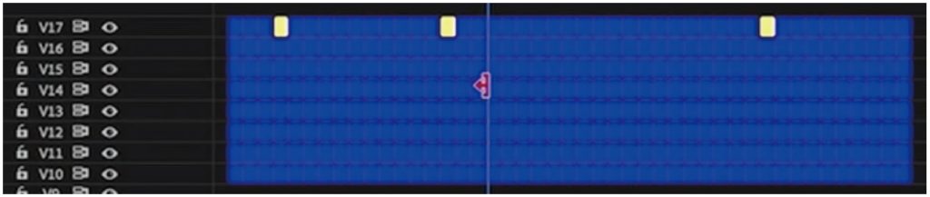 そのような場合は、タイムラインパネルショートカットの[ソースクリップ名とラベルを表示]を使ってコマンドを無効にしましょう。すると、同一のクリップでもラベルカラーを変えられるようになります。このショートカットを使ったうえで、いったんすべてのクリップを同色に変更し、任意のクリップだけ色を変えてマーカーのように活用しましょう。