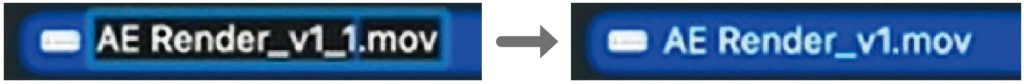 ①で書き出した動画ファイル名を「AE Render_v1」に変更する。