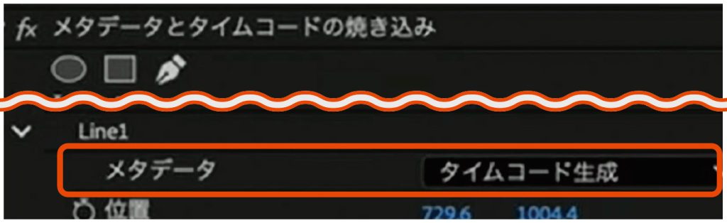 編集が終わったシーケンスに、タイムコードを作成する。プロジェクトパネル内を右クリック、「クリアビデオ」を選択し、「メタデータとタイムコードの焼き込み」のエフェクトを適用する。メタデータの設定を「タイムコード生成」に変更。