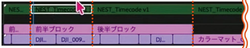 シーケンスをネスト化し、「NEST_Timecode v1」などの名前をつけ、非表示にしておく。