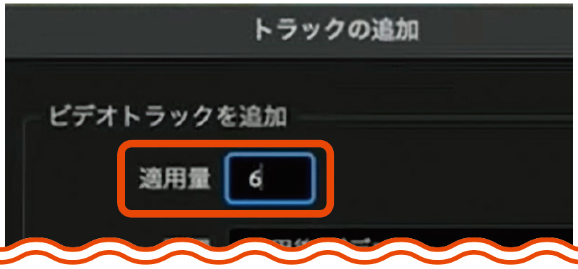テロップ入れが終わったシーケンスに[トラックを追加]から、ビデオトラックを6つ追加する。