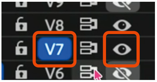 V8の仕分けが終わったら、V7を表示に変更し、ターゲットトラックを選択。
