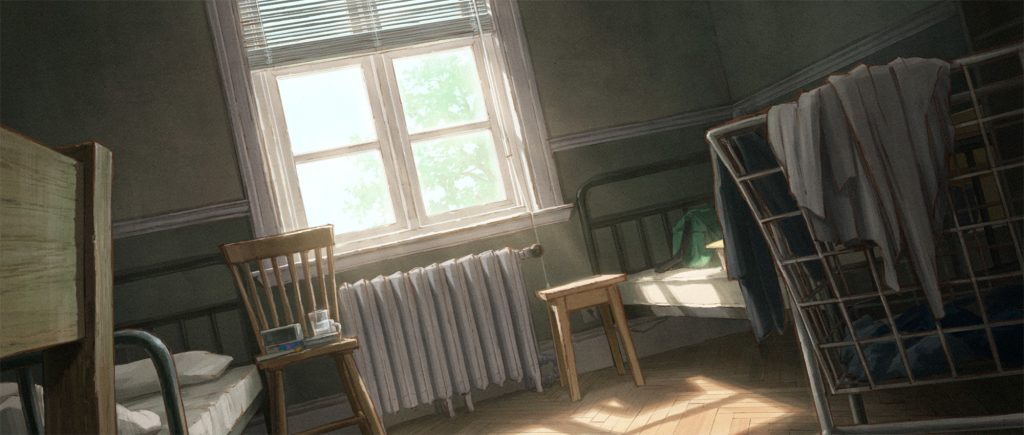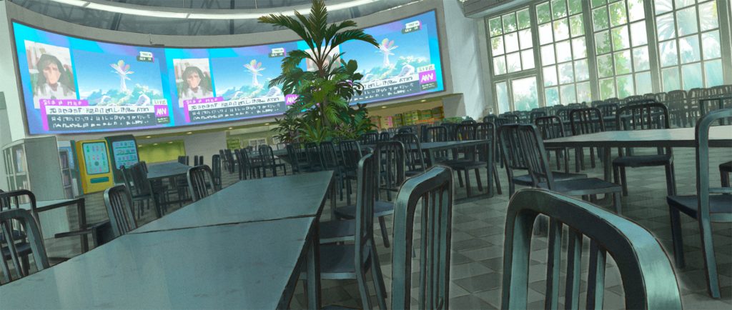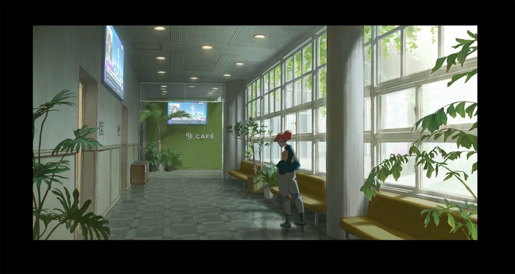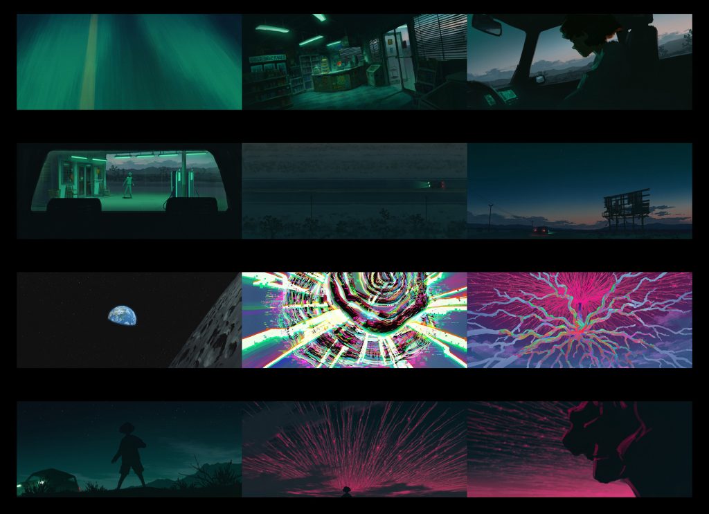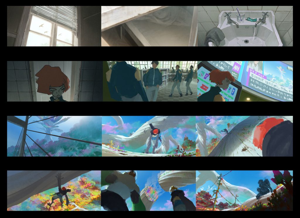 主人公リタの心情によって同じ場所でも色味を変えたいという考えから、美術監督の久保友孝さんにカラースクリプトを描き起こしていただきました。カラースクリプトとは、プリプロダクション段階で使われる視覚ツールで、シーンごとの色と照明を計画的にまとめたものです。これによって、感情の流れや全体の視覚的一貫性を事前に確認できます。本作が初めての試みでしたが、久保さんのクオリティが素晴らしく、シーンごとの色味や雰囲気を早い段階でスタッフ間で共有できました。色彩設計の鈴木このはさんには、カラースクリプトを元に膨大なシーンカラーを設計していただき、おふたりのおかげで生まれた独特な色彩は本作の大きな魅力になっています。