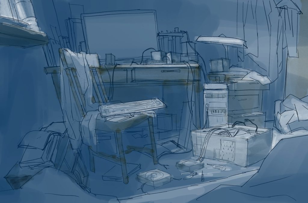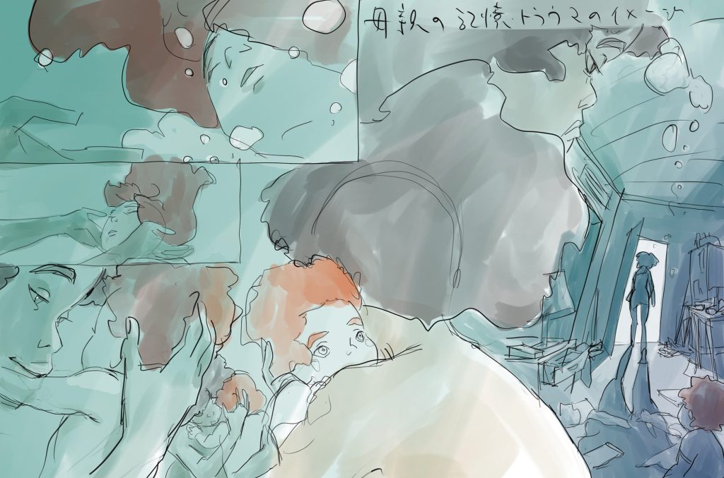 世界観の構築では、チーム内で「バイブル」と呼んでいる世界観のルールや登場人物の性格等を設定した資料を作成しながら、美術監督の久保友孝さんとキャラクターデザインの村上 泉さんに数多くのイメージボードを描いていただきました。久保さんには世界観を、村上さんにはリタをはじめとする登場キャラクターたちの性格や生きている様を描いてもらいました。