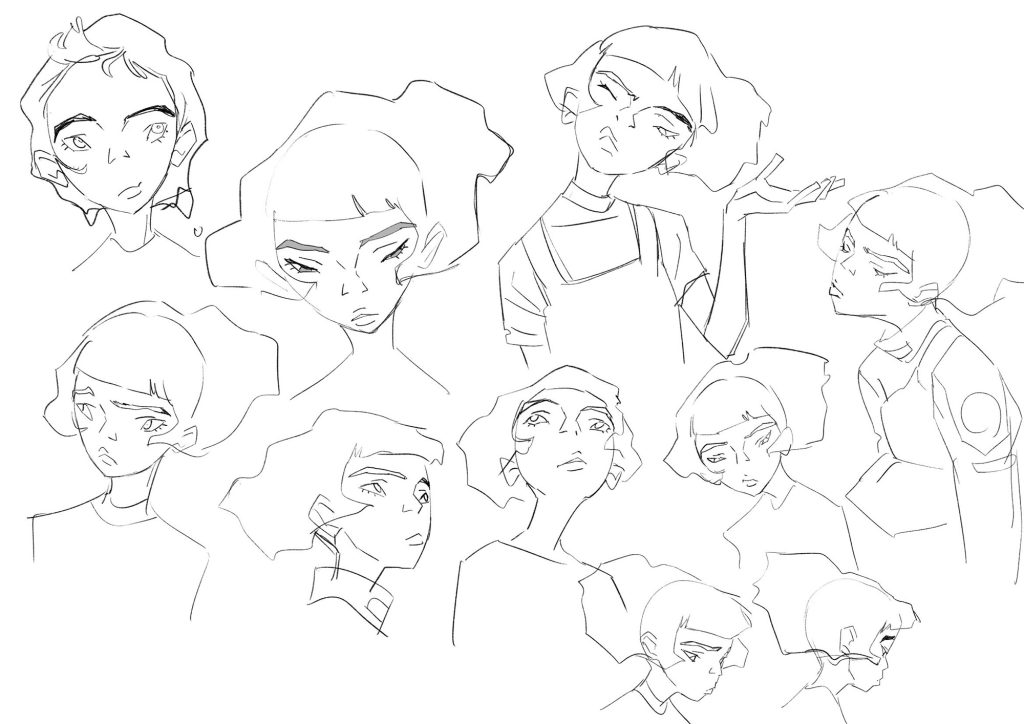村上さんによる個性的で愛らしい表情と美しいシルエットのキャラクター達によって、この映画が特別なものになっています。 最初に主人公 ・ リタの大まかなイメージを自分から提案させていただき、 そこから村上さんによってどんどん素晴らしいスタイルへと洗練されていきました。