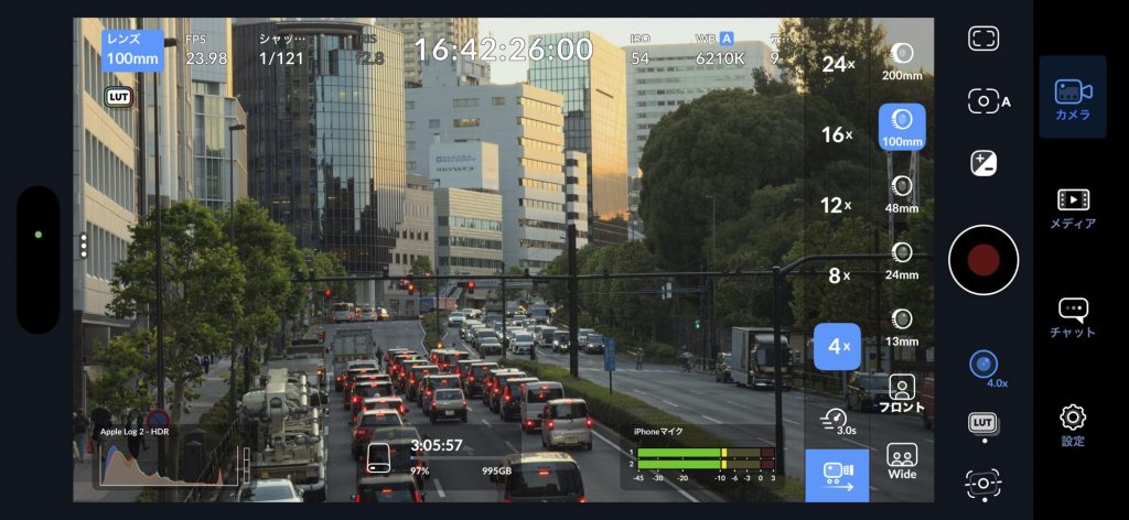 iPhone 17 Pro で撮影してみて感じるのは、レンズのシャープさ。これは単体としては非常に優秀なのですが、動画の撮影としてはややシャープすぎると感じます。Blackmagic Camera にはLUTで色をカスタムする機能はありますが、もう一歩踏み込んでリアルタイムにグレインエフェクトを追加したり、あるいはプロミスト系フィルターをエミュレートした、ハイライトのにじみを実装させられたらカメラ単体での表現力がグッと増すと感じました。もちろんこういった処理にはマシンスペックが必要なわけですが、iPhone 17 Pro のA19Proチップならできるはず。