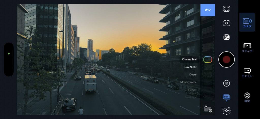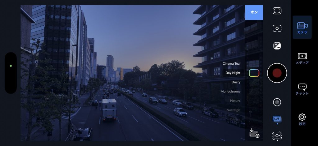 Blackmagic Camera のLUT 機能。「Day Night」を適用したもの。