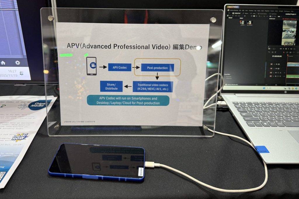 APVは、生の映像に迫る“知覚的ロスレス”をうたう新しい映像コーデック技術だ。会場ではデモ映像とともに、画素領域予測を用いないフレーム内符号化によって、高スループットと低複雑性を両立している点が紹介されていた。2K/4K/8Kといった高解像度コンテンツでも、数Gbps級のビットレートを安定して処理できるという。