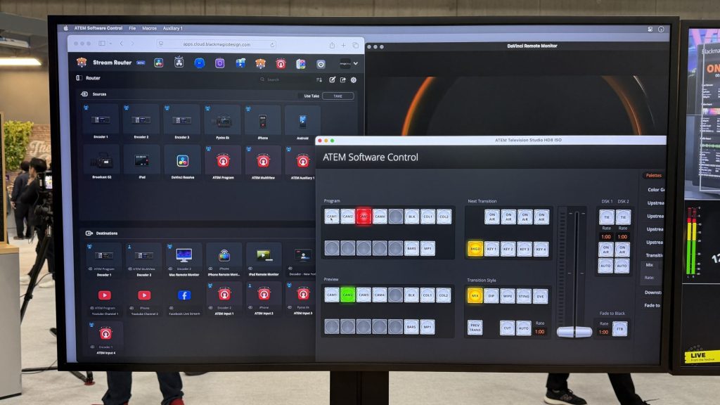 ブラックマジックデザインのブースでは、ライブ配信ワークフローの新たな可能性を示す「Blackmagic Streaming Encoder」が注目を集めていた。H.264/H.265ハードウェアエンコーダーで、YouTube、Facebook、Xといった主要プラットフォームへの直接配信に対応。新たに展開するBlackmagic Cloudの配信機能との統合も予定されている。