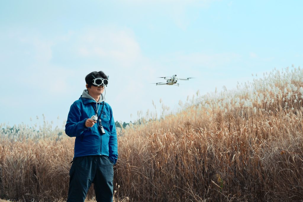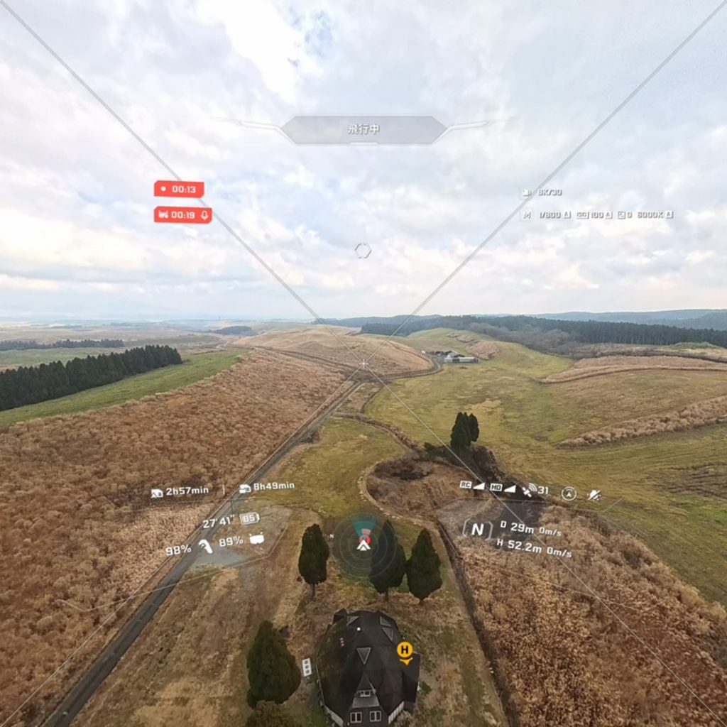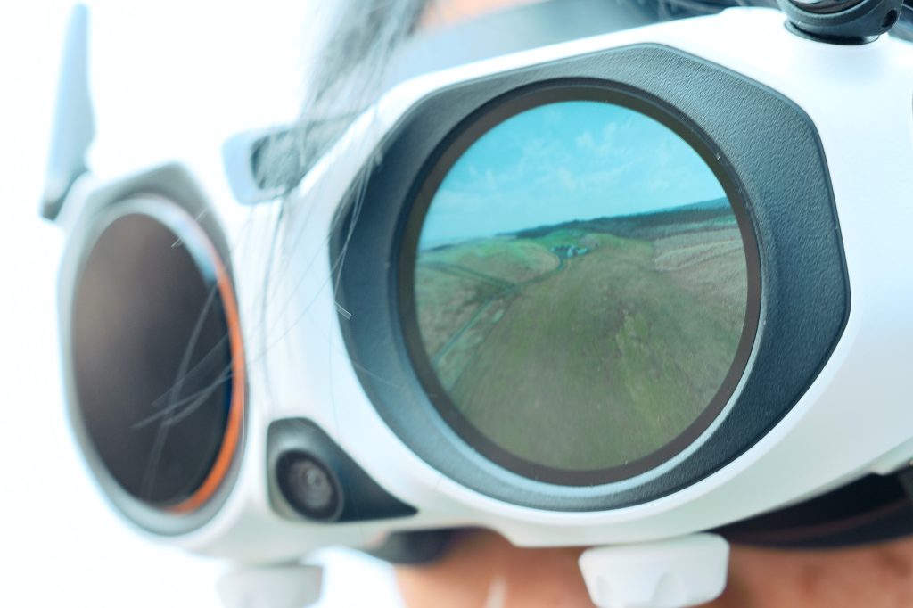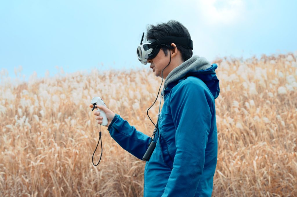 実際にゴーグルを装着して飛ばしてみると、これはもう “未知の体験” でした。空を飛びながら、首を振るだけで 360度、好きな方向をそのまま見回せる。映像というより、自分自身が空中を漂っている感覚に近いのです。