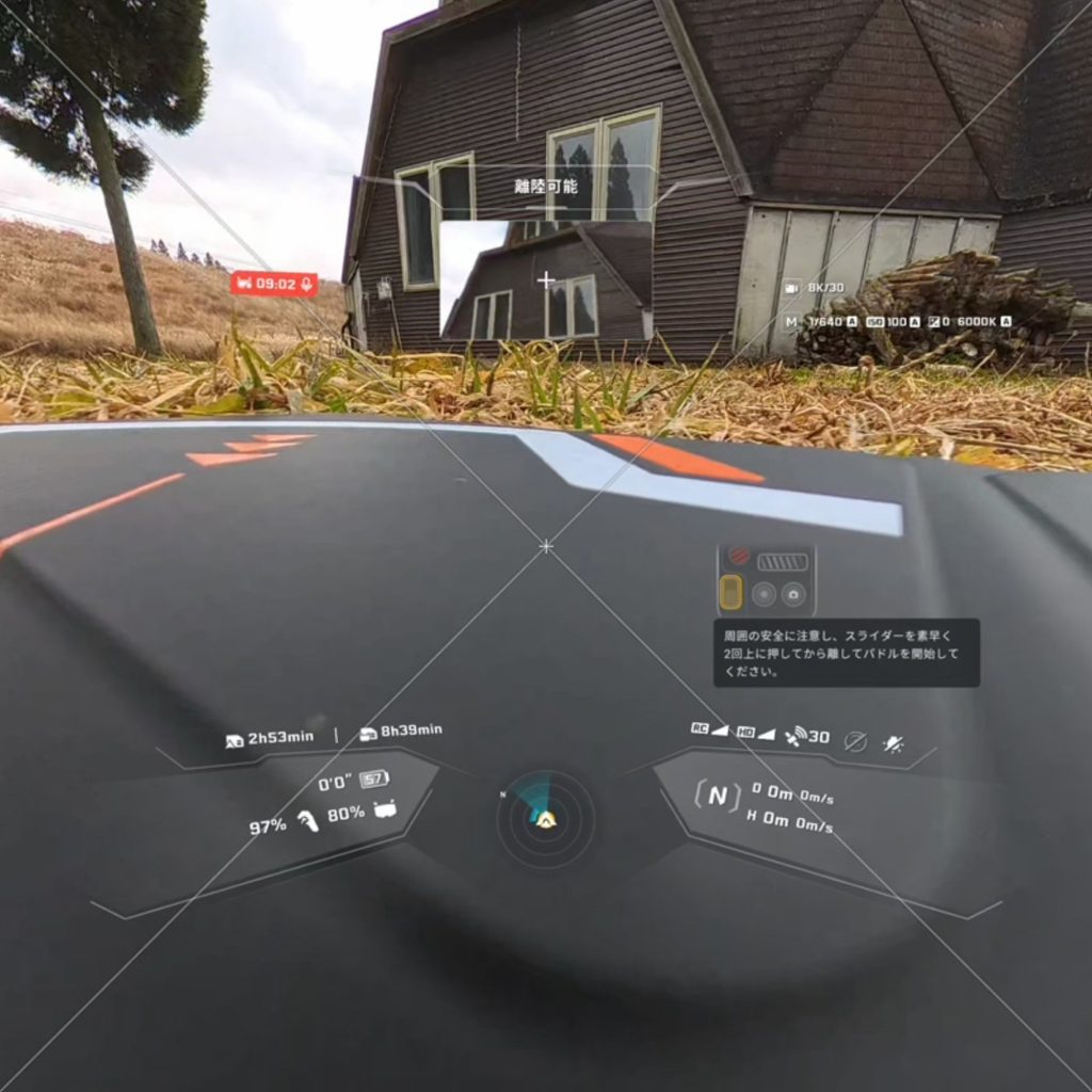 操作面についてもよく考えられており、ゴーグル内のUIに各操作方法がわかりやすく表示されるため、スティックの使い方やボタン配置に戸惑うことなく、自然と扱い方を覚えていくことができます。
