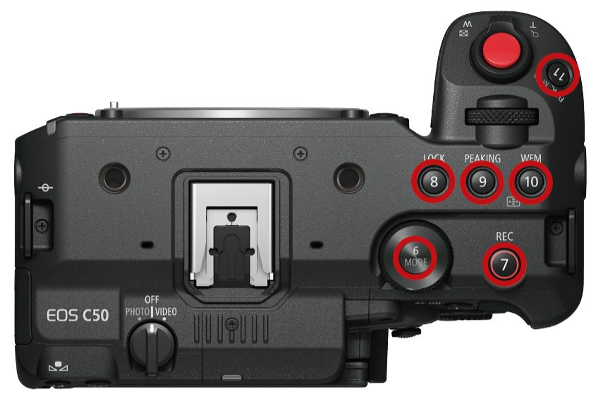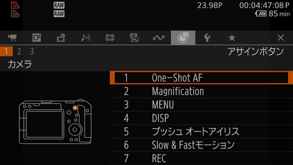 フォルスカラーや波形モニター、ピーキングなど撮影に直結する機能は天面のボタン、拡大フォーカスやメニューなどディスプレイ系の機能は背面に配置。「特に便利なのは、6のモードダイヤルを押し込むと「Slow&Fastモーション」に切り替わるようにカスタマイズしていることです。意図しないと押し込まないので、急にスローになったりすることがありません。この割り当てはめちゃめちゃ良かったです」と由井さん。