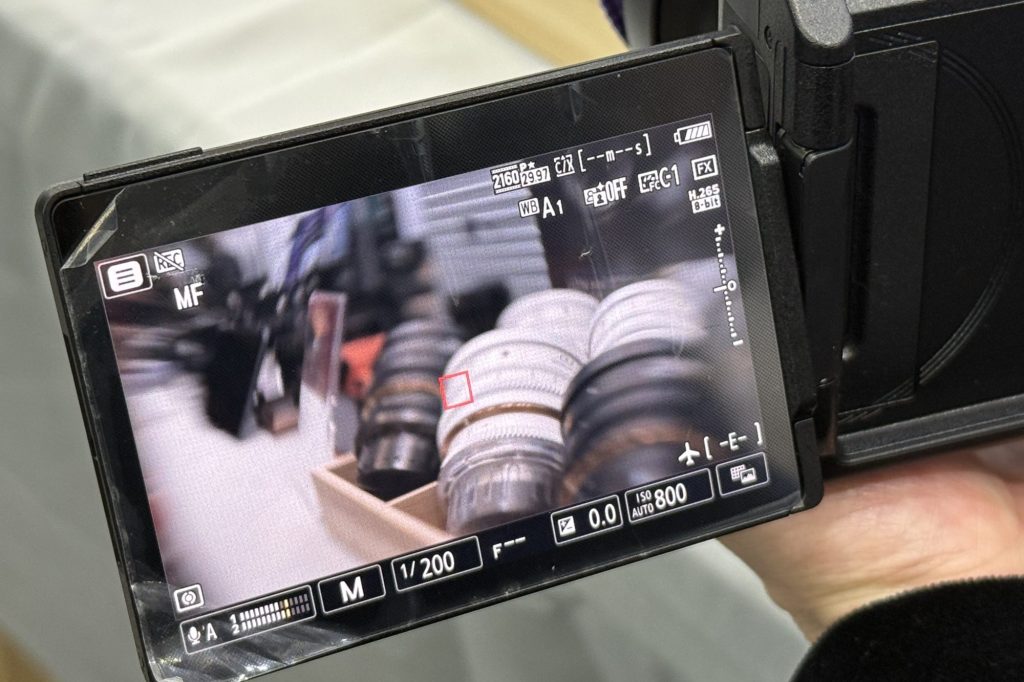 焦点工房ではDULeNSや7Artisansなどのシネレンズのほか、マウントアダプターなどを中心に展示していた。上の写真は7ArtisansのFloral Bloom 37 mm T2.9。パープルのアノダイズ加工が施されており、ビジュアル面でも目を引くデザイン。ブース担当者はエヴァレンズと呼んでいた。マウントはPLだが、ニコンZRにマウントアダプターを介して装着していた。映画などでLomographyのNew Petzval 58 Bokeh Control Art Lensを使用した渦巻き状のボケを見かけることもあるが、それと同じような効果が得られる。MVやファッションムービーなどで効果的に使えそうだ。価格や発売時期は未定だという。